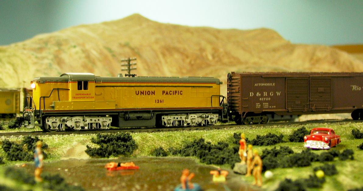 On a Saturday several months ago, while the train crew was laying over in Vegas, engineer Bad Bad Leroy and conductor Montana Ed, some how wandered over to one of the casinos. Before long, they had lost several weeks of pay at the poker table. Leroy decided to put the 926 up for more money. At first, conductor Ed disagreed, but soon gave in. Leroy not being a good gambler, soon lost everything and the casino now owned the 926. “Oh my gosh, what are we going to do.” As the two wandered back to the train yard, they were devastated as to how get the train back to LA. Returning to the yard, they were met by Corey, one of the car knockers who asked why the casino had taken possession of the 926. Ed and Leroy explained their tale of woe exclaiming that they needed a locomotive to get them back to LA. After several minutes, Corey suggested that there was an old Baldwin AS-616, UP 1261 out back waiting to be cut up for scrap.