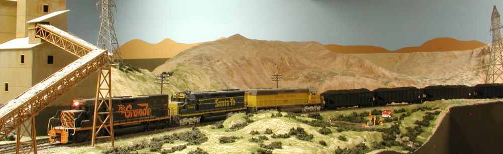 At Cajon we see Rio Grande engine Extra 5378W, a coal train is pulling by the Lime Plant. This train originated at Helper Utah on the Rio Grande and is bound for the Kaiser Steel Plant at Fontana. This train is a joint operation between the Rio Grande, Union Pacific and Santa Fe Railroads. West from Barstow to Fontana this train is actually a Santa Fe train. Note that a family is swimming in the waters of Lost Lake.