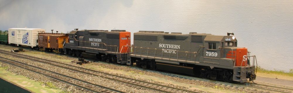 At Colton the SP Hauler 7959 is preparing to make a run to the San Bernardino B Yard with a cut of cars. The SP Hauler operates daily to move cars between the two railroads. On other days the SP Hauler as it is known may be operated by B Yard crew.
