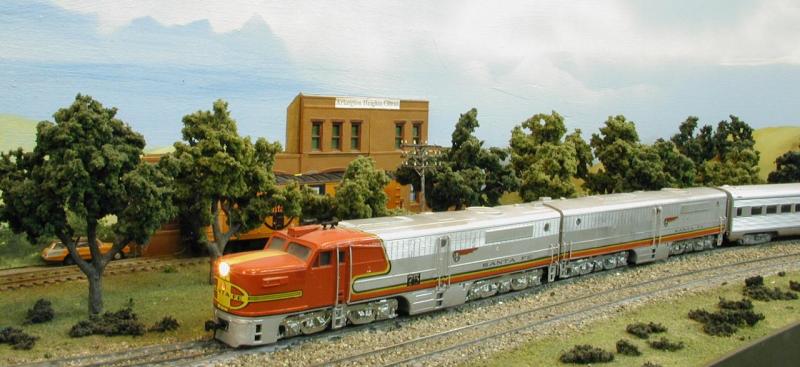 Our special today is powered by ALCO PA2/PB2, Santa Fe Number 75. As the departure time nears, our engineer confers with Senior Track Inspector; Otto Gage who assures us the track ahead is in excellent condition. At exactly 11 AM, Engineer Willey brings the ALCOs to life and he slowly eases out on the main heading west.
