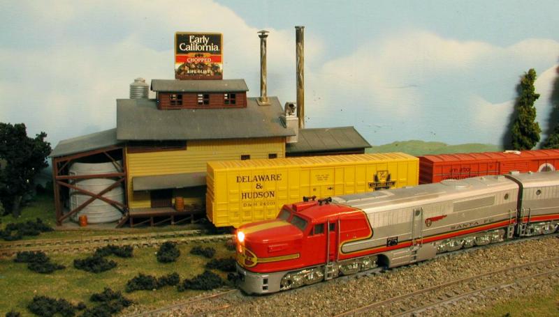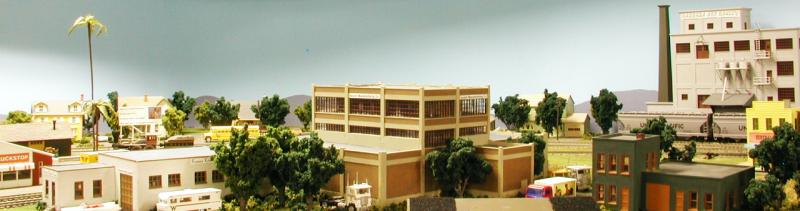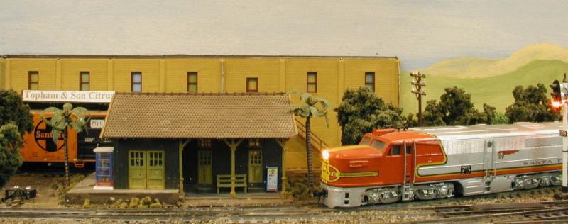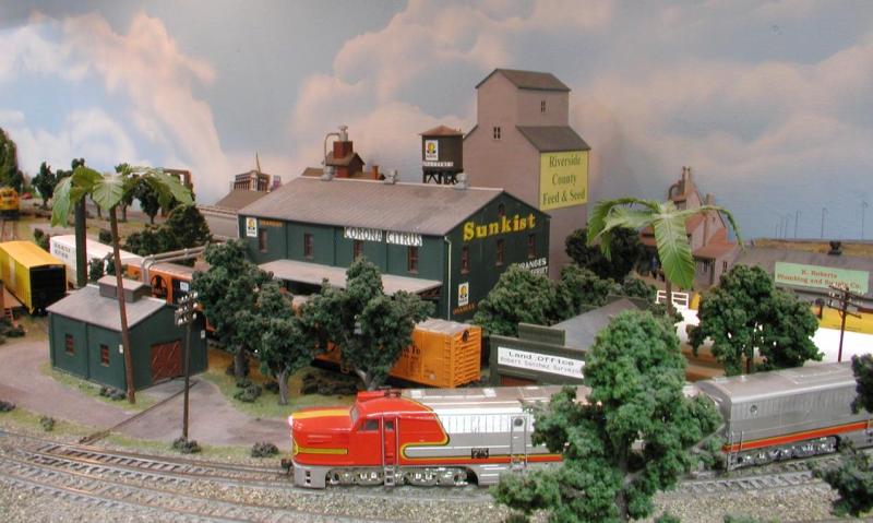 After a short delay, our Special re-enters the main at Casa Blanca to continue east. In the background behind the Casa Blanca depot, we see the Topham & Son Citrus Packing House.