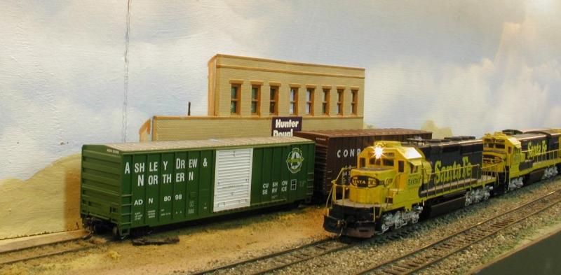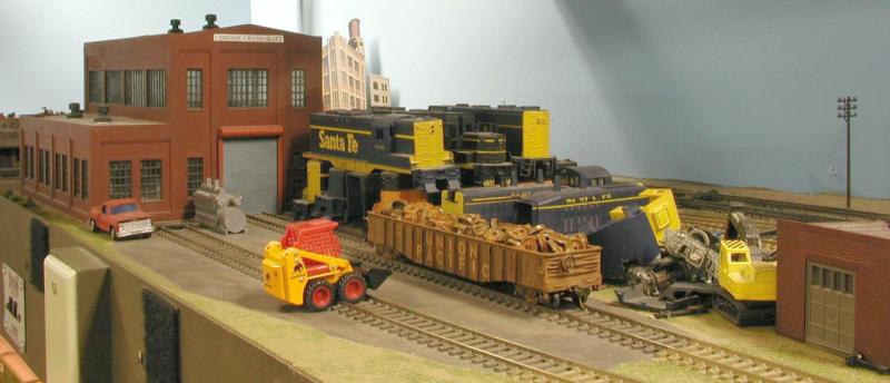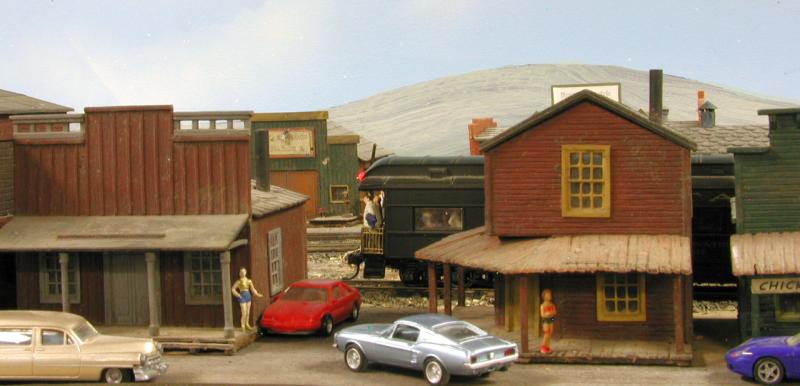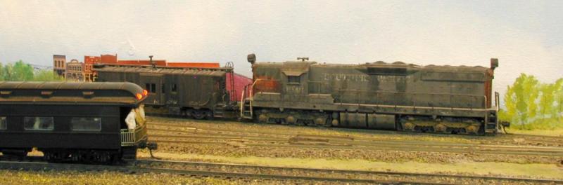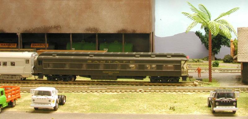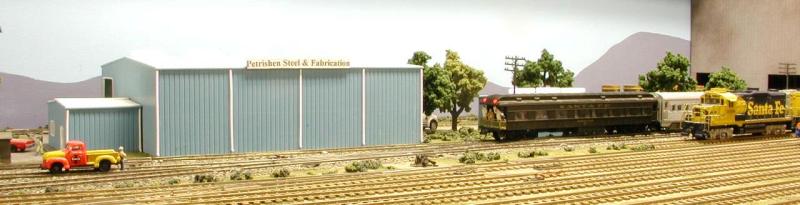 In the distance we see the Edward Coli and Sons Gourmet Foods distribution plant. Edward is our caterer for today’s trip. On the right we see the CSWRR’s car clerk, Igor the Great entering the B Yard Office with a couple of pizzas. The red 57 Chevy is Igor’s pride and joy.