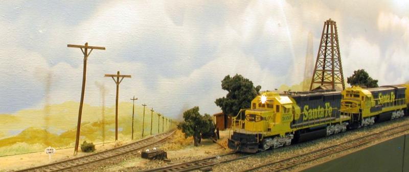 At Pachappa, we meet Santa Fe 8521 West with a Grain Train for the Port of Long Beach. The McMahon Manufacturing plant produces oil well pumps.
