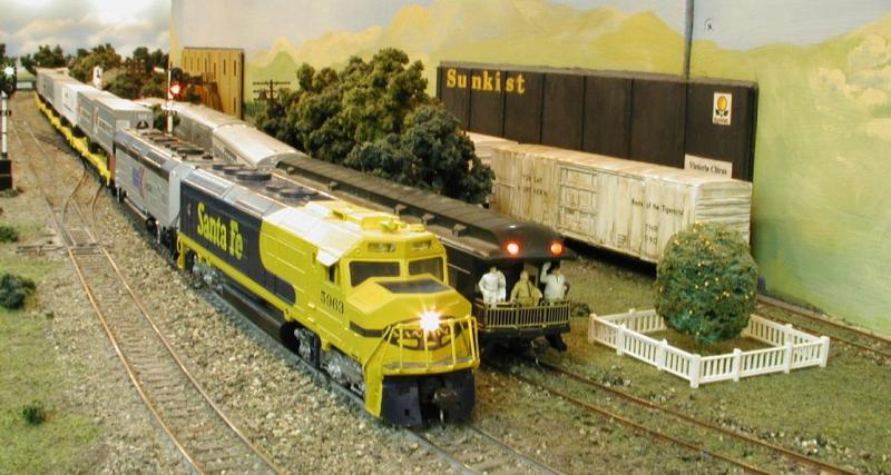 Approaching Casa Blanca, our special is put in the siding so we can observe the Parent Navel Orange Tree and the Victoria Citrus Packing House. While in the siding, we see Santa Fe Extra 5963 with an Ex Amtrak unit roar by with an intermodal train bound for the port of LA.