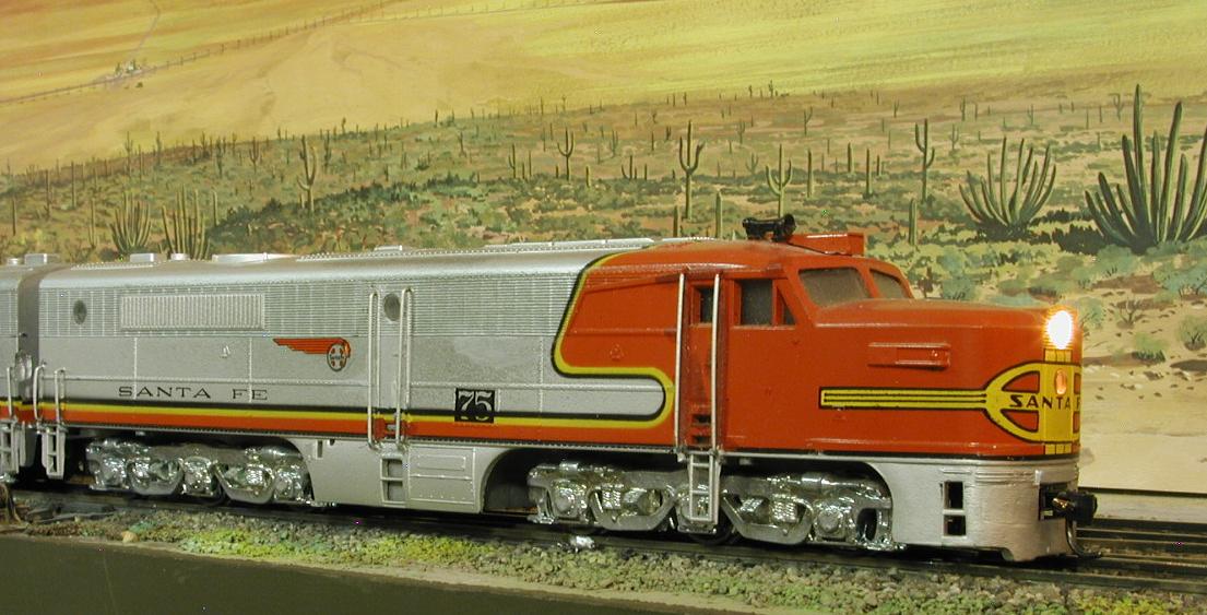 Just two months later, the Cadiz Turn slowed to a stop and set out a PA and PB locomotive painted in the red and silver war bonnet paint scheme. The Locomotives came complete with dingle-dangle balls in the windows.